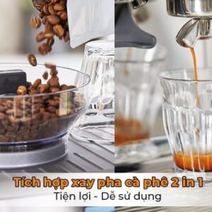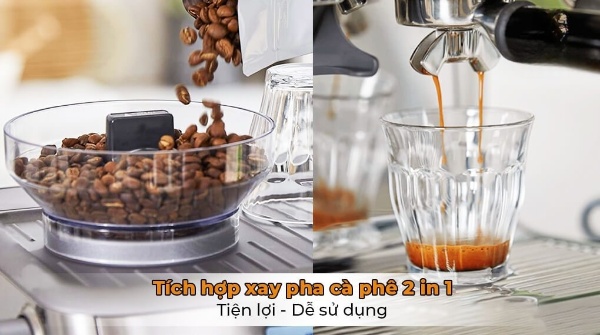 Tính năng xay và phê cà phê được tích hợp trong một chiếc máy 870 vừa tiện dụng vừa tiết kiệm diện tích để máy cũng như chi phí đầu tư khi mua máy. Máy xay cà phê breville 870 với chế độ xay buzz-grinder làm bằng thép không gỉ cao cấp xay xanh và không làm nóng bột cafe. Núm điều chỉnh cỡ xay với 18 mức cho bạn chuẩn xác độ mịn cà phê theo mong muốn. Hơn hêt với phần máy xay được thiết kế ngay cạnh bộ phận pha cà phê sẽ đảm bảo giữa được trọn vẹn độ tươi ngon của cà phê.
